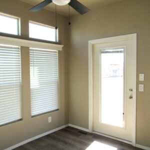 One of the standout features of this tiny home is its stunning bay window, which not only adds architectural interest but also floods the living space with natural light. This inviting nook is perfect for curling up with a book, enjoying morning coffee, or simply taking in the view. The design creates an open and airy atmosphere, making the space feel larger and more inviting. - Elegant French Door: