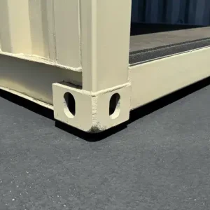 Each container is thoroughly cleaned, repaired as needed, and painted with RAL 1015 beige DTM (Direct-to-Metal) industrial-grade paint for superior rust protection and a professional appearance.