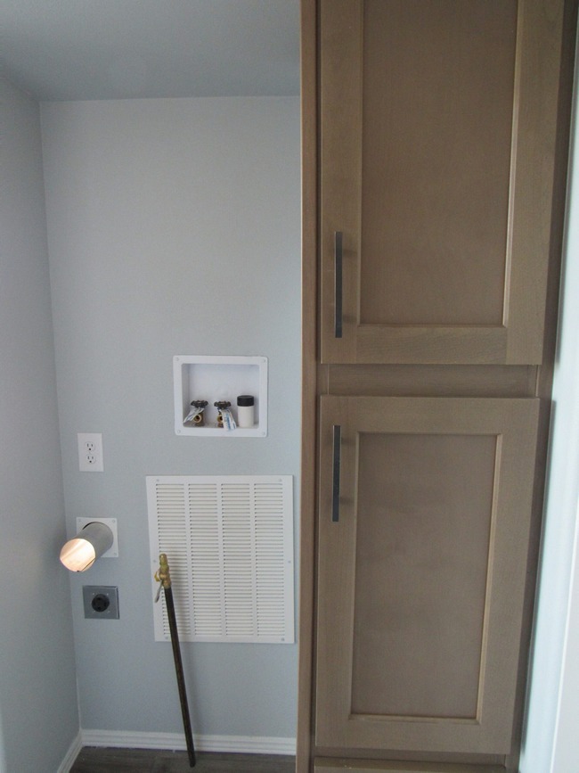 - Vanity: 36” tall lavy cabinet with a square drop-in sink, topped with laminate countertops and optional ceramic tile backsplash.