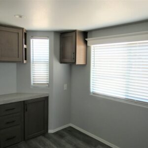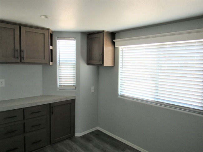 - Sturdy linoleum in all main living spaces, including the kitchen and bathroom.