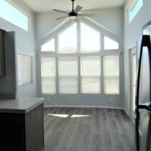 - Convenience Features: Pre-wired for ceiling fans in both the living room and bedroom, plus a stylish dimmer switch in the dining room with a 3-light chandelier.